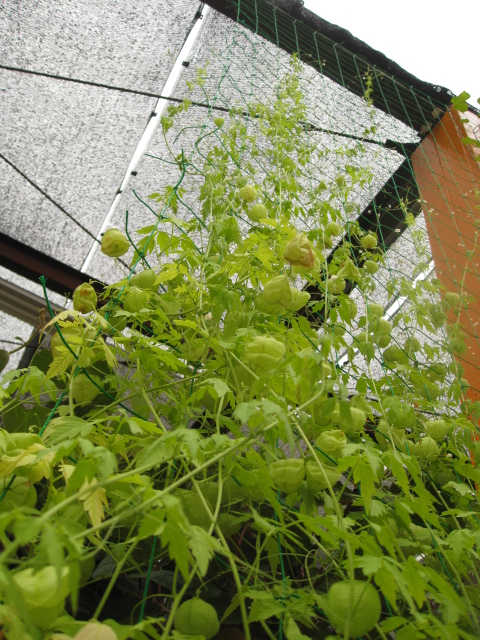売場の緑のカーテン左側 フウセンカズラですぅ(・∀・)