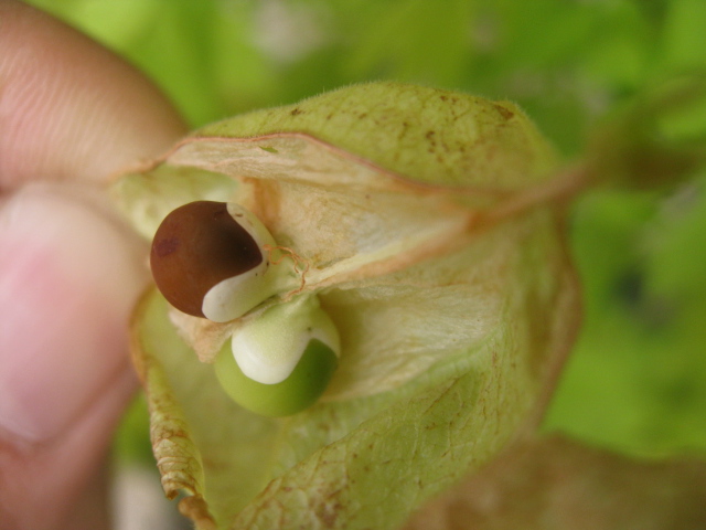 台所のテーブルの上に昨日のフウセンカズラの種子を置いておいたら