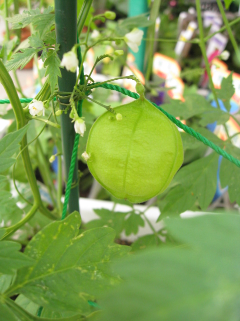 180cmの両端にプランターがあって、左側がこのフウセンカズラ。