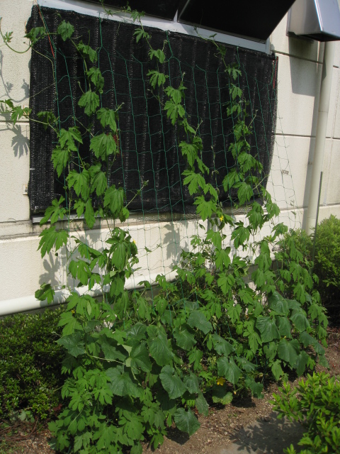 こちらは事務所の窓を直撃する西日を避けるべく植えられたゴーヤちゃん。