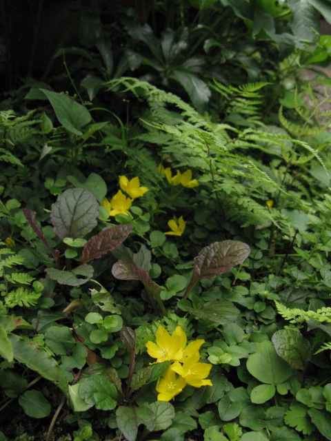 その後ぐんぐん伸びて地面をびっちり覆ったリシマキア・ヌンムラリア。